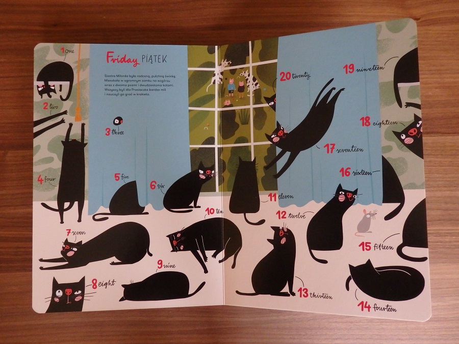 „Misia-a, Misia-be, Misia Kasia Kon-fa-ce!” – już za mną chodzi ta wylicznka, Mała Czytelniczka też próbowała fragmenty powtarzać. „Feluś..” jak zwykle rewelacyjny, przeczytaliśmy od deski do deski. W „Prosiaczku…” hitem jest liczenie kotów po polsku i angielsku.
