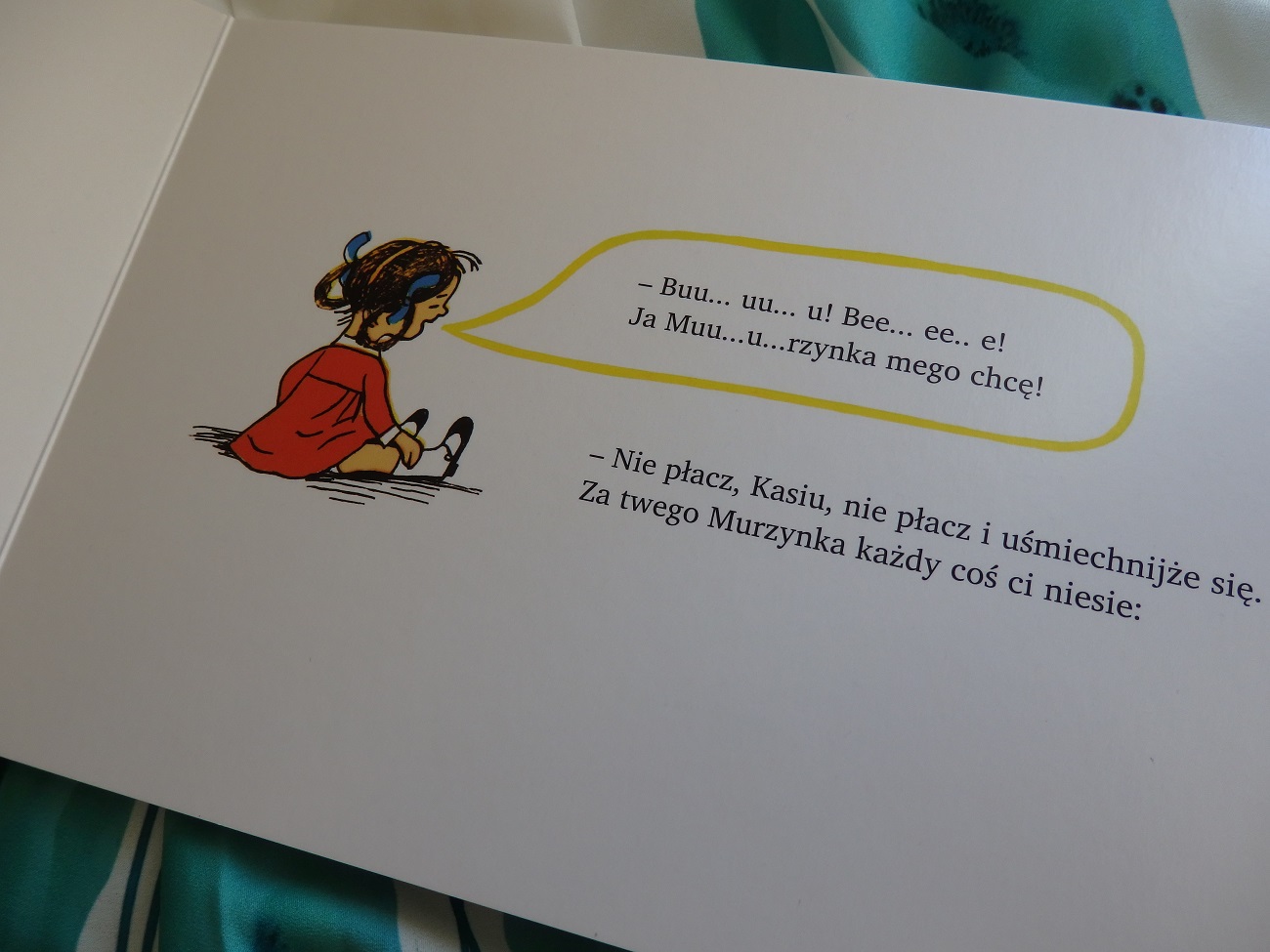 Melodyjny i wpadający w ucho wiersz – naprawdę świetnie się go czyta, jego rytm jest wręcz idealny, momentami wręcz śpiewny. Bardzo szybko Mała Czytelniczka zaczęłą zapamiętywać jego fragmenty i dopowiadać w trakcie czytania.