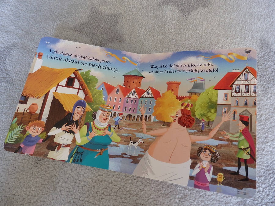 “Mydło„, o którym pisałam już recenzję (klik). To nasz rodzinny hit i bardzo ją polecam. Książka ma znakomity, pełen humoru tekst Małgorzaty Strzałkowskiej i fantastyczne ilustracje Adama Pękalskiego. Akcja dzieje się dawno, dawno temu. Król zażywając kąpieli wzdycha, że w jego królestwie jest tyle brudu. Mydło, słysząc to, czmycha z królewskiej dłoni i nie zważając na pościg zaczyna samozwańczo pucować wszystko co tylko napotka po drodze.