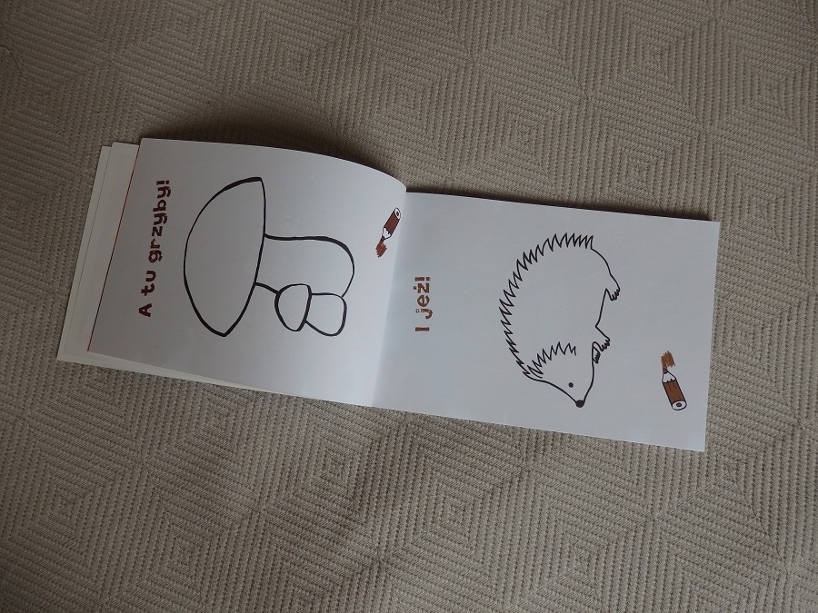 Do minusów zaliczam sposób zszycia, czyli w górnej części zamiast z boku. Znacznie trudniej jest dla małych rączek przewracać kartki do góry i tak samo rysować na obrazku w górnej części. Maluchowi ciężko korzystać z takiej kolorowanki samodzielnie i działa to trochę zniechęcająco. Jeśli więc Mała Czytelniczka ma ochotę na kolorowanie, to ja pomagam jej przewracać kartki i podtrzymuję zeszyt. Mimo tych niedogodności jednak podoba mi się ta pozycja i na pewno sięgnę po kolejne, gdy już ją wypełnimy. Na oku mam “Kiedy słonko świeci” – na pierwsze wiosenne dni oraz “To już umiem sam” w ramach zachęty do samodzielności :).