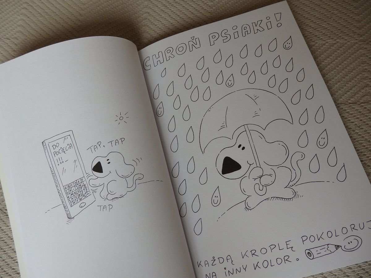 Najbardziej podoba mi się tu różnorodność i kreatywność zadań. Książka jest narysowana żartobliwie, ale wygląda lekko i elegancko. Gdybym miała tu coś poprawić to doradziłabym inny rodzaj oprawy. Obecnie jedną ręką trzeba przytrzymywać książkę , aby się nie zamknęła, co przy jej formie aktywnościowej może być minusem. Myślę jednak, że podobnie jak i przy poprzedniej części, dzieci szybko zaprzyjaźnią się z tym sympatycznym psiakiem i będą mieć dużo frajdy z opiekowania się Fafikiem.